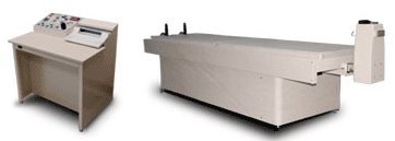 The device is a two-part table in which the upper part is fixed to the table frame and the lower part slides back and forth to provide intermittent traction. The patient is anchored to the lower part by a pelvic harness. United States patents have been issued for the table [1], the harness [2], and the table’s operation [3]. The picture to the right shows the VAX-D control unit and table.